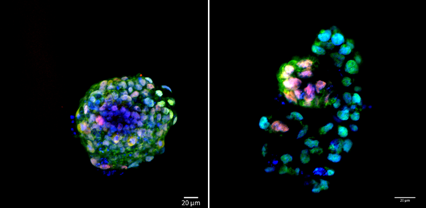 The Right Image: A serendipitous capture of a damaged blastoid, which bears a striking resemblance to a beating heart.